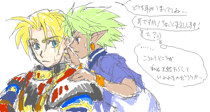 しばらく待てども誰も来ないので、メディオンとシンテシスの必要以上にラブラブ絵を描こうかと丸二つくらい描いてるときに